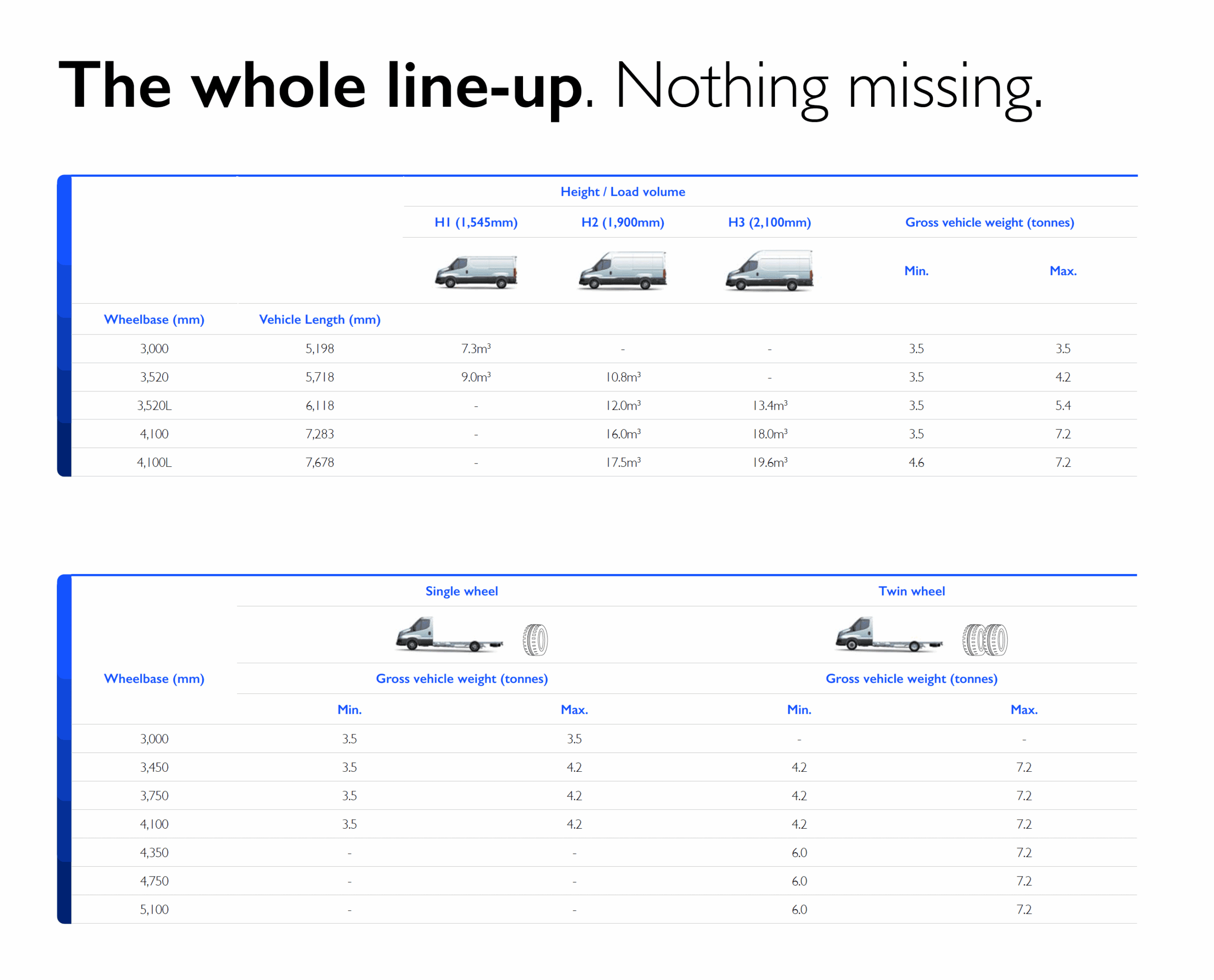 eDaily is offered in Van, Cab, Crew Cab, Chassis Cowl and people mover versions, and is confirmed as the most versatile and complete base for conversions, offering a wide combination of wheelbases and gross vehicle weights.
