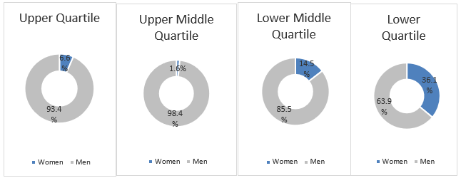 The above chart illustrates the gender distribution across Northern Commercials (Mirfield) Limited in four quartiles.