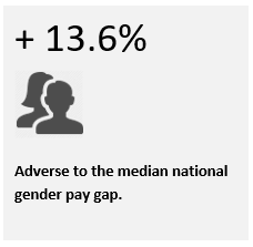 The overall gender pay gap as at 5th April 2022 was 28.5% on a median basis (27.3% using the mean pay). This represents +13.6% adverse to the national gender pay gap for all industries which is 14.9%, median (Office of National Statistics 2020).
