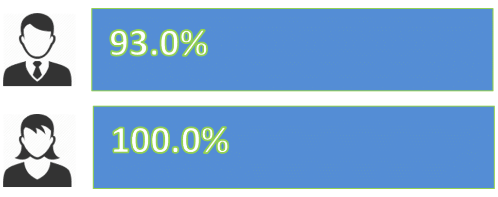 This shows a -7.00% difference in the number of men and women who received a bonus for the reporting period.