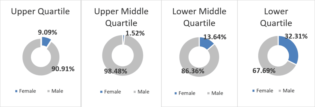 The above chart illustrates the gender distribution across Northern Commercials (Mirfield) Limited in four quartiles.