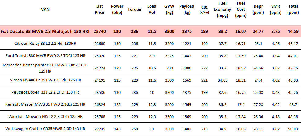 The result of this number-crunching is that the worst performer, the Crafter, will cost a whopping £4,352 more to run over 80,000 miles than the Fiat Ducato.
