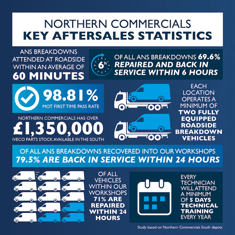 At Northern Commercials we offer a comprehensive range of servicing and after sales packages. Our workshop will repair and service any make of commercial vehicle from a 10cwt van to 150 ton tractor.