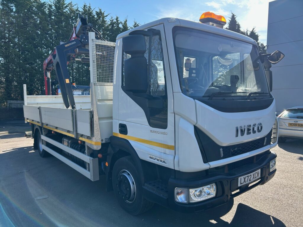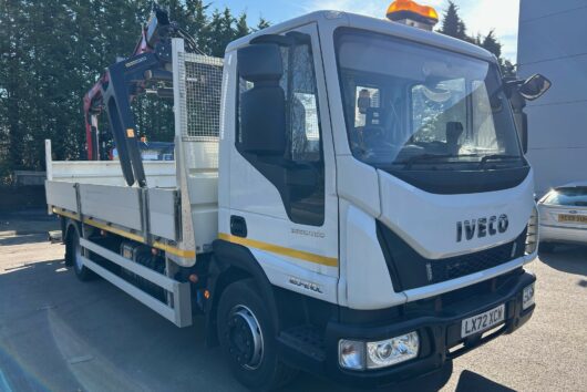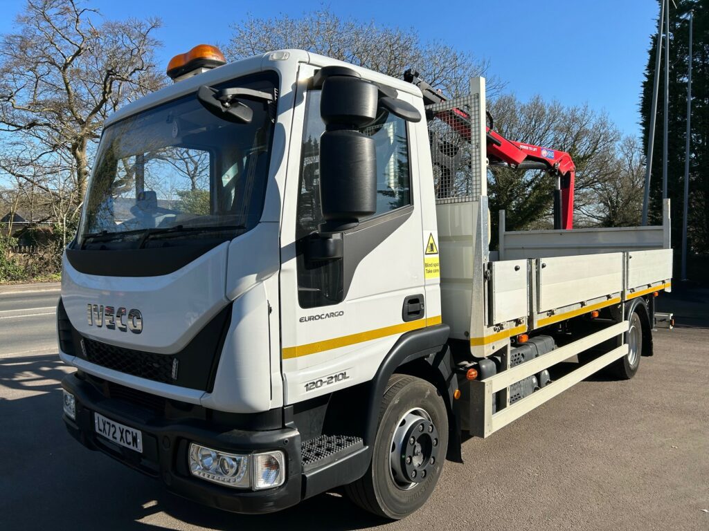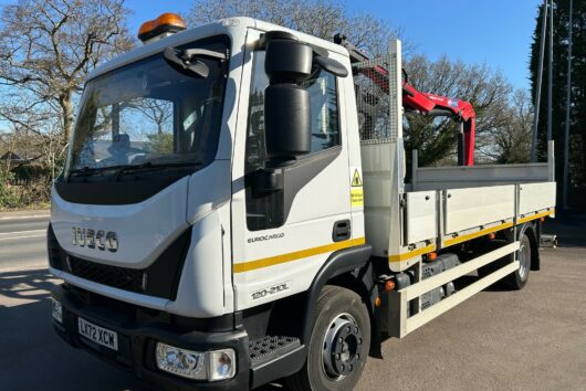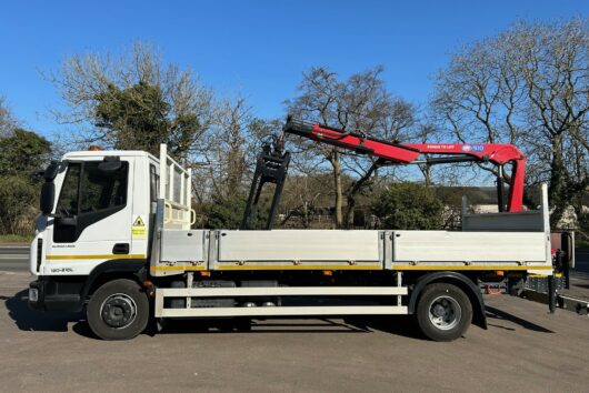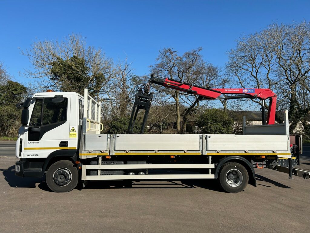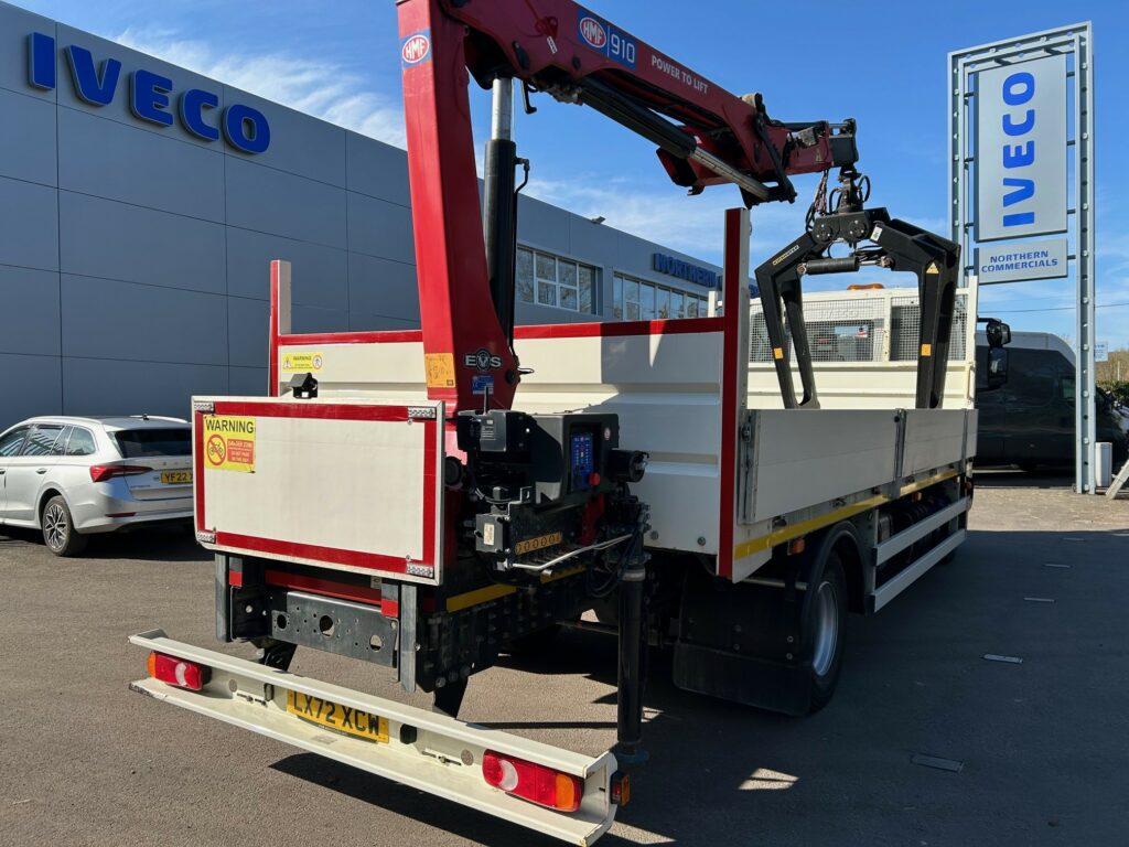 12t IVECO Eurocargo with 19′ Dropside body and HMF 910 Remote Crane