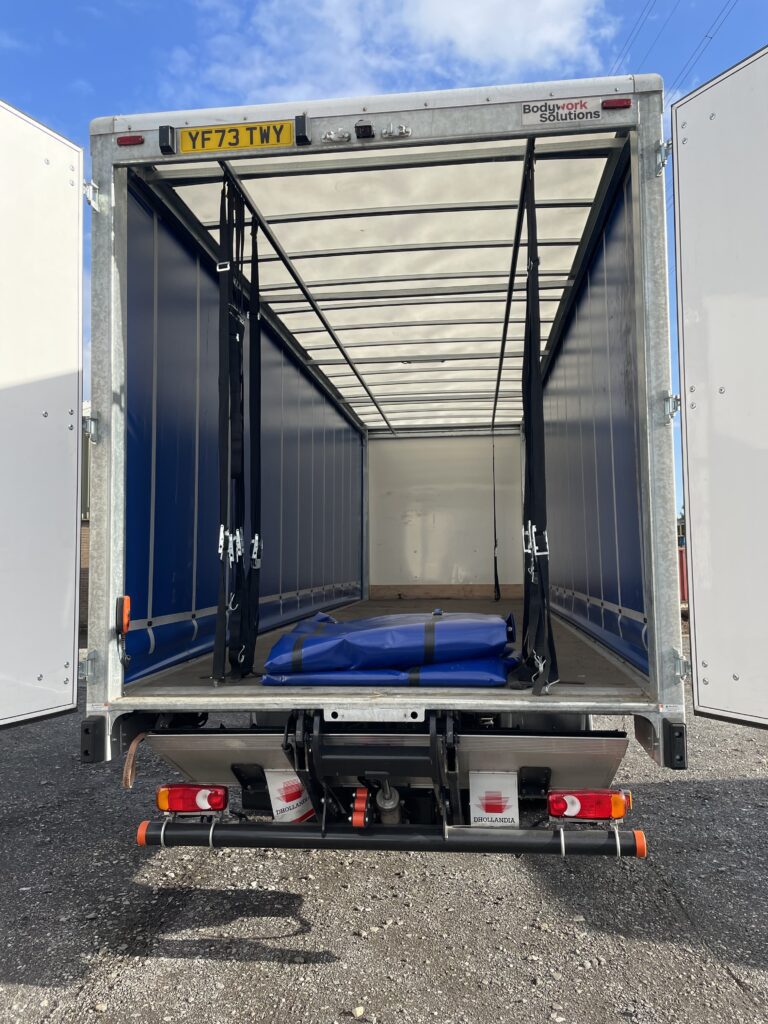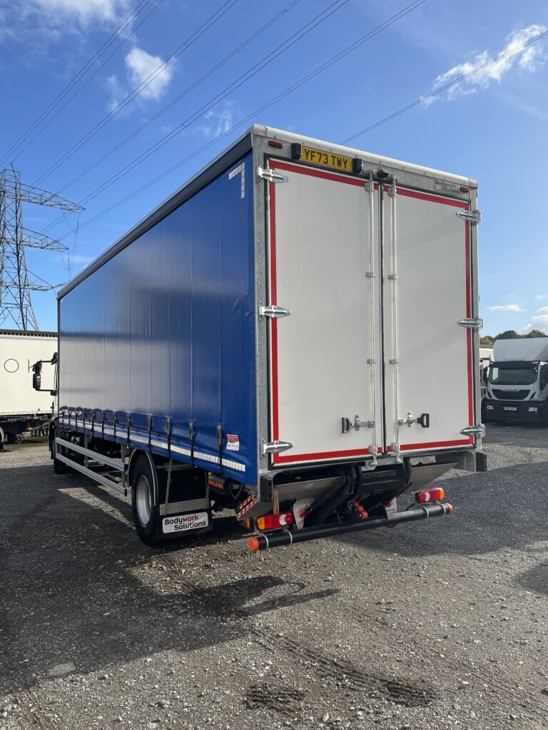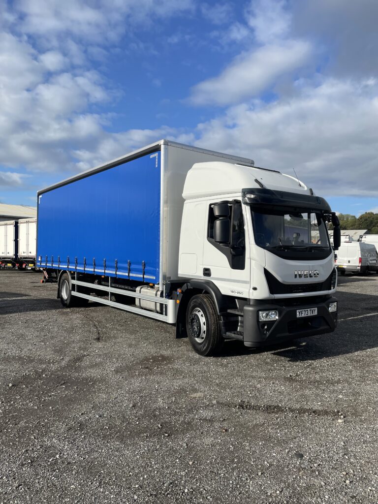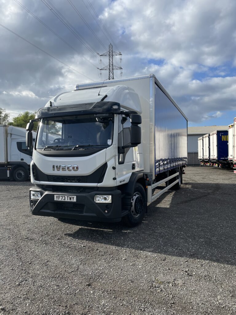 2024 (73) Iveco Eurocargo 180E25 High Roof Sleeper Cab. The body is a bodywork solutions 28ft Curtainside with a Tuck Away Tail lift. This vehicle was supplied by us from new and has been on an R&M contract with us. This vehicle has an automatic gearbox, air conditioning, two comfort seats and cruise control. Please call us on 01484 717333 for more information.