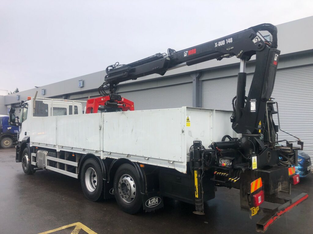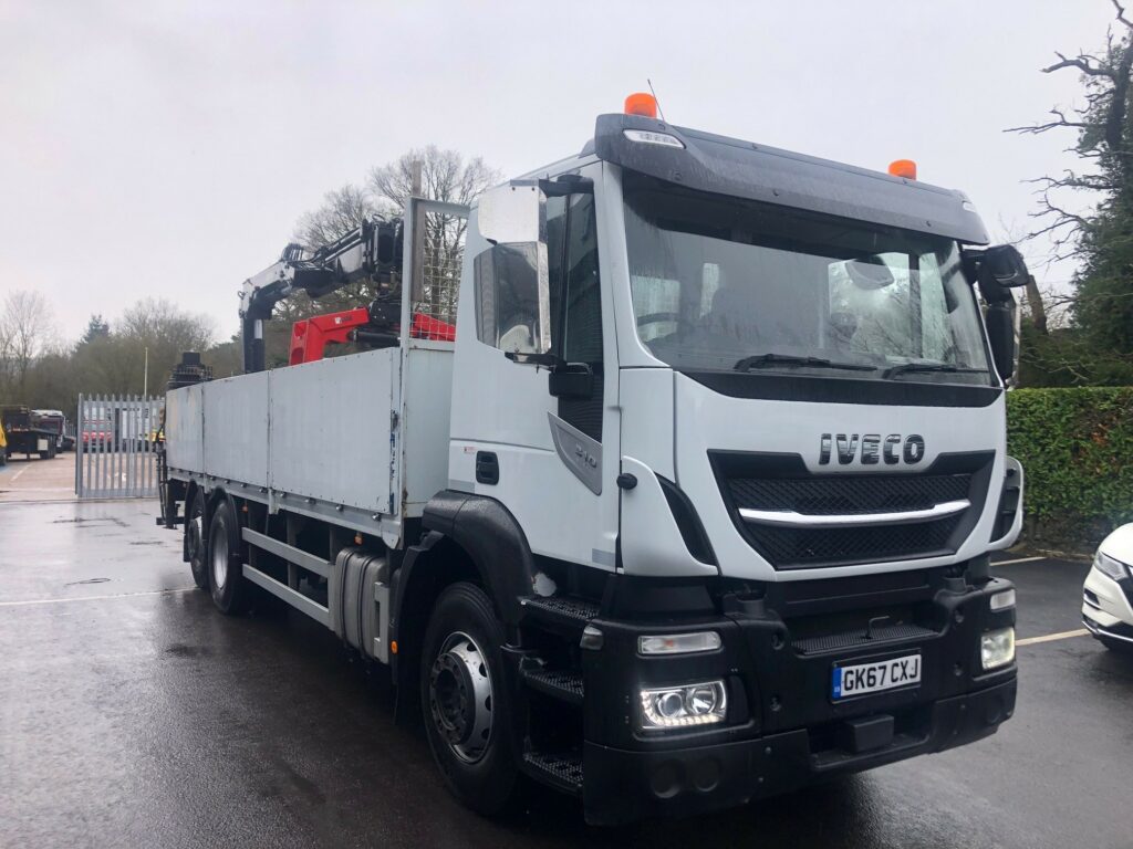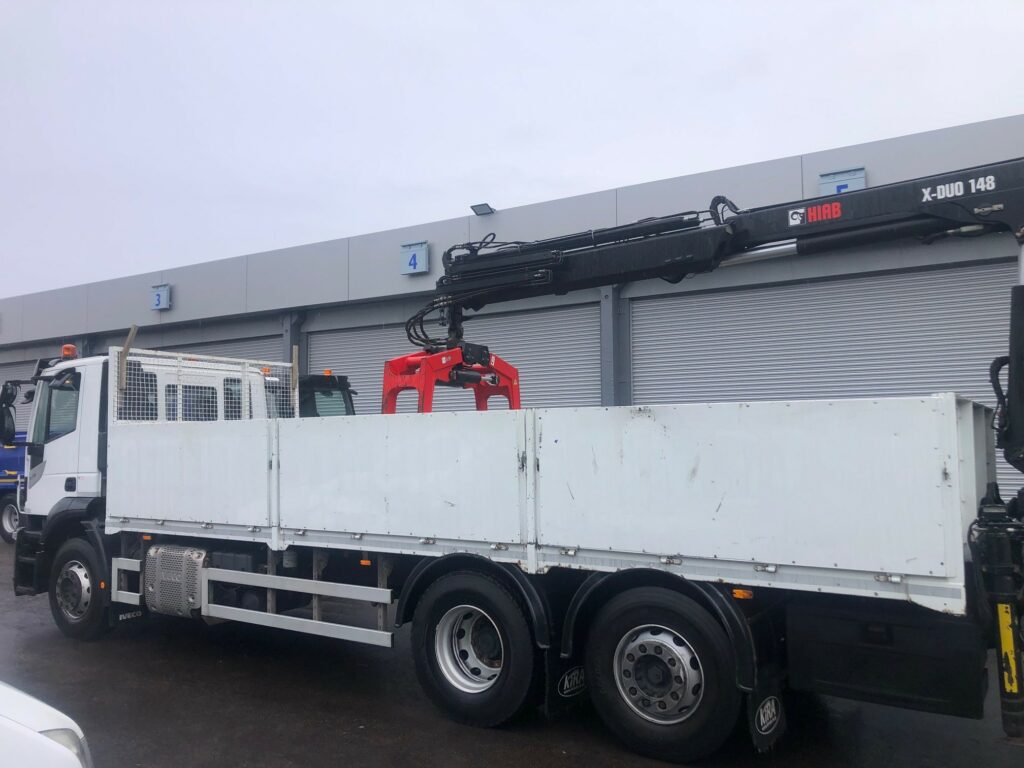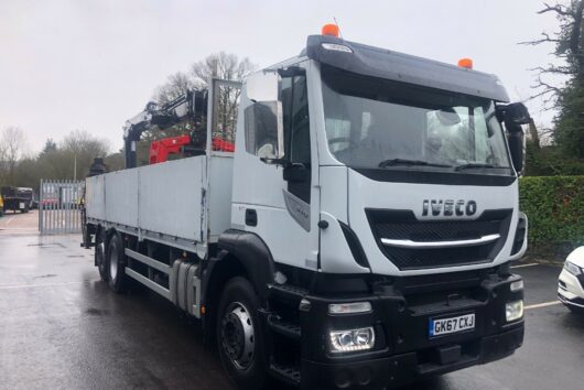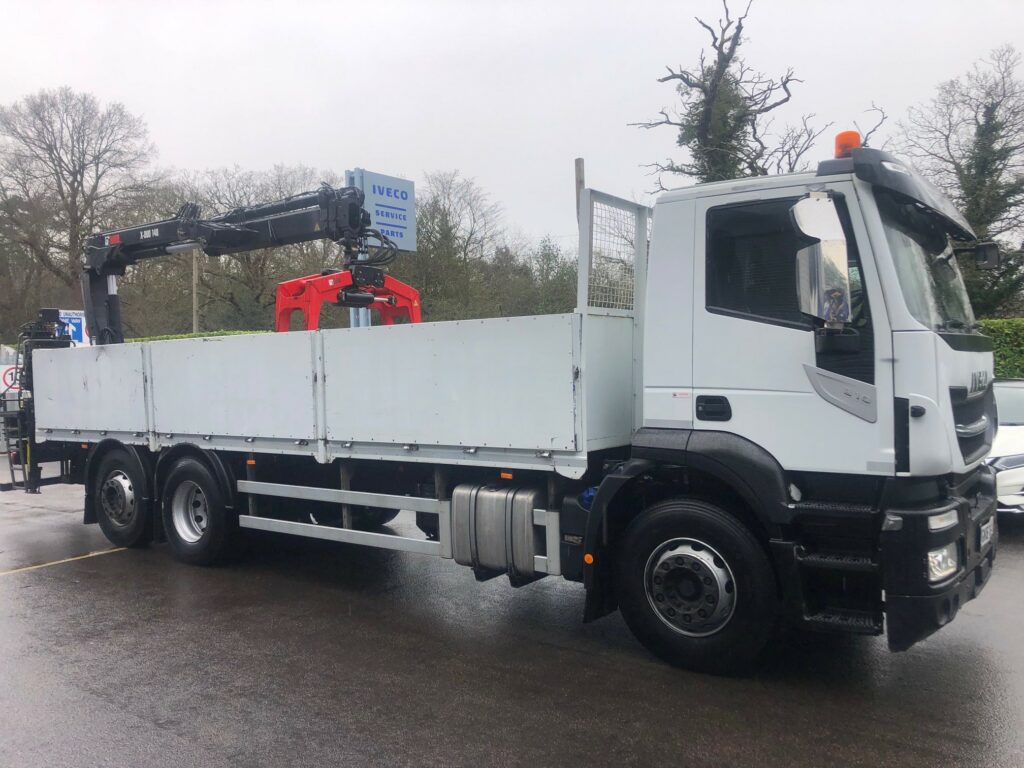 2017 (67) Iveco Stralis AD260S31Y/PS Dropside and Crane. This truck is perfect spec for builders merchants! The crane is a rear mounted hiab x-duo148 with clamp. This truck includes an automatic gearbox, air conditioning and cruise control. It also has lifting rear steer.