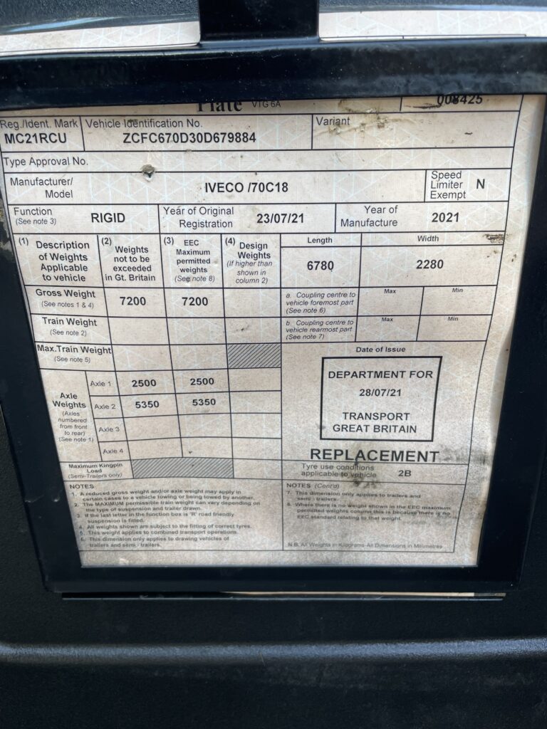 2021 (21) Iveco Daily 72C18 14ft Dropside. This vehicle features a 6 speed manual gearbox, reverse camera, spare tyre, side mounted tool boxes, beacon, air conditioning, cruise control, DAB/bluetooth radio and USB/AUX ports. This vehicle has also been on a full repair and maintenance contract with us from new so full service history is available. Call us on 01484 717333 for more information.